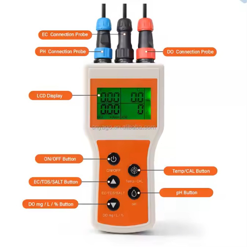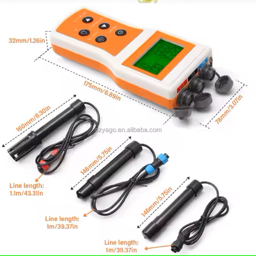 با استفاده از این دستگاه علاوه بر DO میتوانید به اندازه گیزی پارامتر های کنداکتیویتی ، پی اچ و دما نیز بپردازید و لازم به ذکر است که الکترود های این دستگاه به صورت یکجا به فروش میرسد.